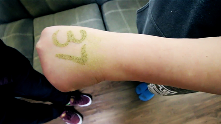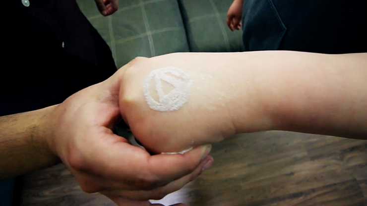 The Bare Sharpie allows you to invisibly write or draw anything on YOUR hand, which you easily and imperceptibly transfer onto their hand. The best part? It has no scent or stickiness, and can be easily wiped away after the performance. This is a hygienic, "neat" version of the "Ashes on Arm" trick -- it doesn't endanger a spectator's clothing or look "dirty."