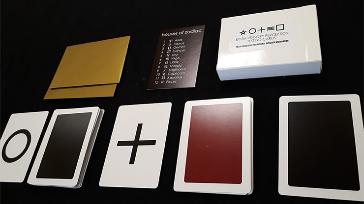 Housed inside the "International Paranormal Research Association" box are two complete ESP or Zener decks. One red-backed deck, and one original black-backed deck. The new cards have been printed to the highest standard by the US Playing Card Company, so they look and feel great. Inside your deck you'll also find a selection of extra cards and fakes, providing you with more creative possibilities than any other ESP deck on the market.