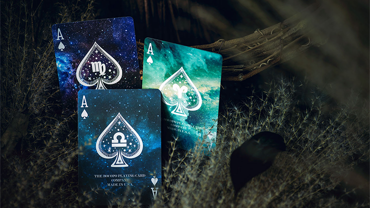 The Constellation Playing Cards features 56 custom cards printed on the classic Air-Cushion Finish. The deck displays beautiful and mysterious images of different constellations in the universe. Released by Bocopo Playing Cards Company and printed by USPCC, these decks are guaranteed to mesmerize you.