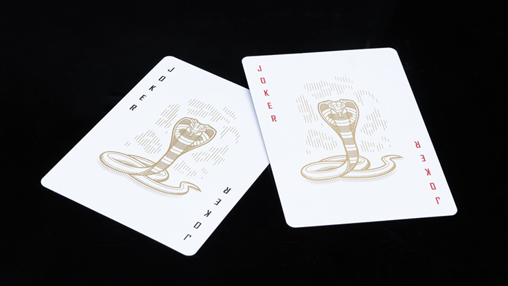 Illustrated by the supremely talented Rick Davidson and housed in a gorgeous soft touch black 330gsm tuck box, complete with gold foil COBRA logo and detailing. Traditional faces and numbers are accompanied by gold metallic inks on the Courts and backs. Described by Cartamundi as 'revered and incomparable,' COBRA is a premium deck made to be used. It has been praised and reviewed by Chris Ramsay, Magic Orthodoxy, RAVN and more.