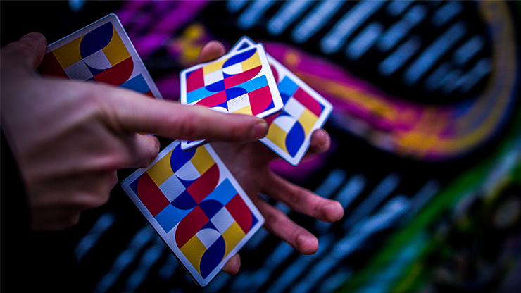 54 fully customized cards in a geometric, flat art and Bauhaus inspired style that emerged from the designer's sightseeing sessions of the Parisian street art culture. Its simple yet elegant shapes and vivid colors will catch the eyes of your audience and enhance your card flourishes at the same time, making it perfect for cardistry.
