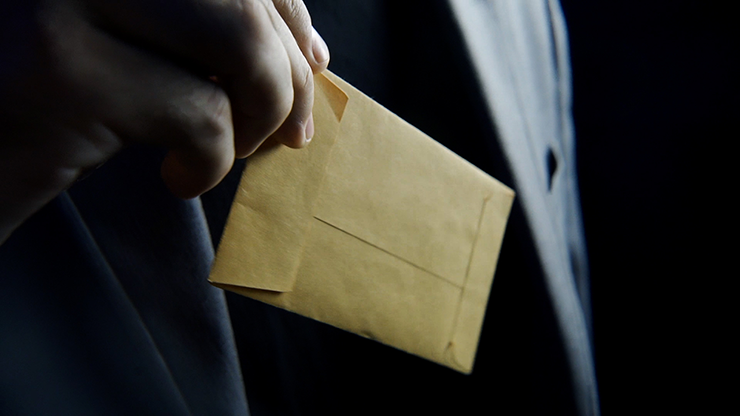 A regular Manilla envelope is freely shown on all sides and is placed on the table. Any card is selected, signed and then lost into the deck. You claim inside the envelope there is a $20 bill (any currency can be used). If you do not find the card, they can keep the money.