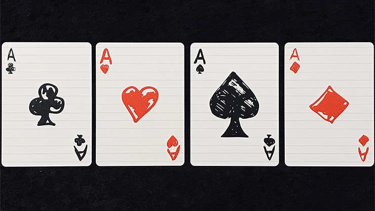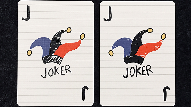 Each of the custom faces has a background of ruled lines, as if they were drawn in a real notebook. The designs emulate classic spot and court cards but look as though they were simply sketched out during study hall.