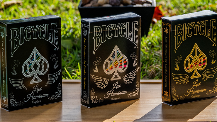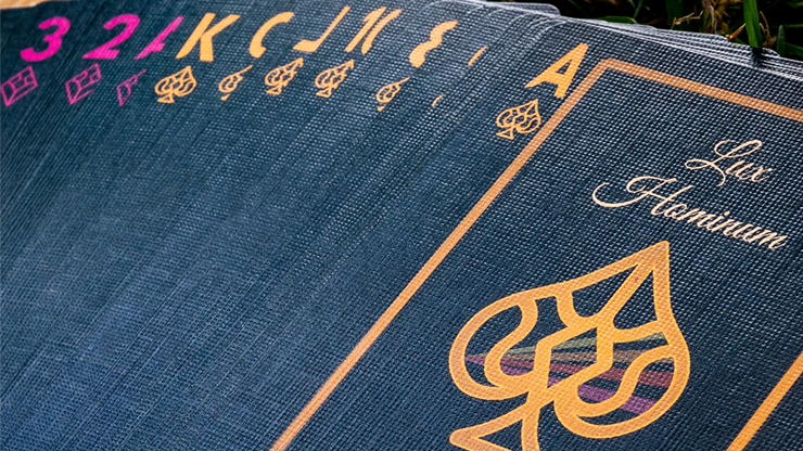 The design of the front of each box corresponds to the colors of the suits of the cards.