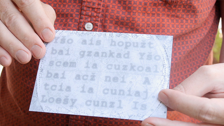 You give your volunteer a card with a picture of a "haunted" fortune teller machine on one side and Romani (Gypsy) writing on the other. You borrow a cell phone and take a picture of the spectator holding the card - but when they look at the photo, the foreign words have changed to English and they give the spectator's fortune! It is uncannily accurate and can even predict a lucky number or chosen card!