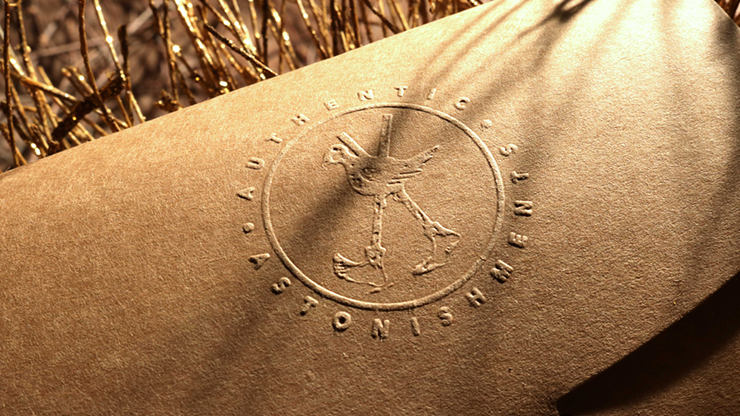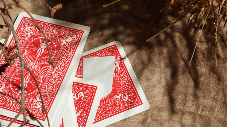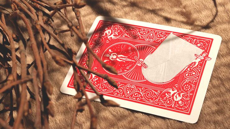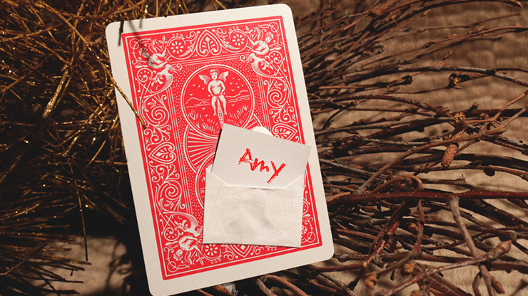 A printed angel visibly reaches into the card's "hyper-dimensional quantum zone" to pull out a tiny "angel" envelope. Sealed inside the envelope, written in ruby red pencil on golden paper, is the spectator's secret name or word.