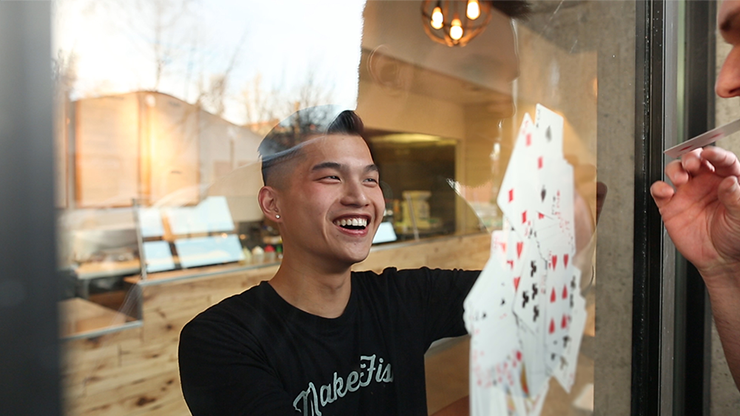 Rift is a revolutionary breakthrough in the Card Through Window plot. Spread the cards across a glass window, and you effortlessly pull their card through the glass, using nothing more than your mouth. All this with your hands shown clearly empty and placed behind your back.