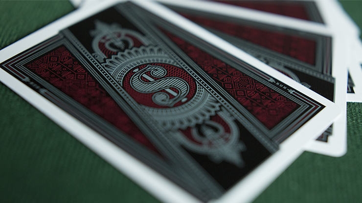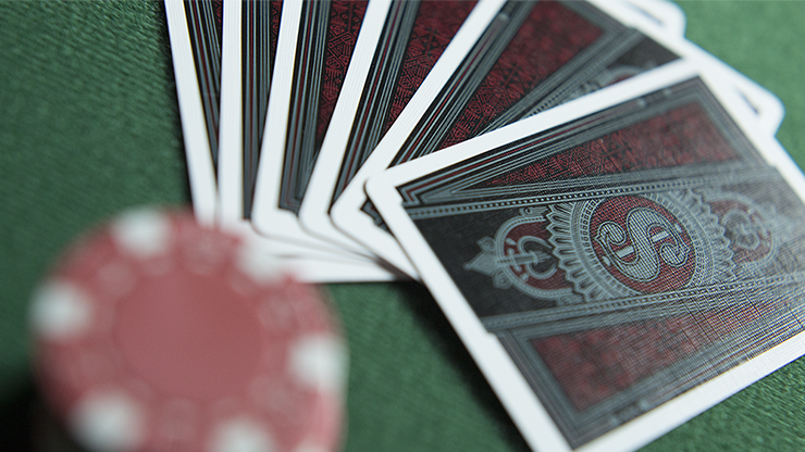 Encased in a black tuck adorned with crimson foil and a side opening, Run Playing Cards: Bankroll Edition is a collector's dream. The crimson red and chrome grey backs convey confidence and luxury.