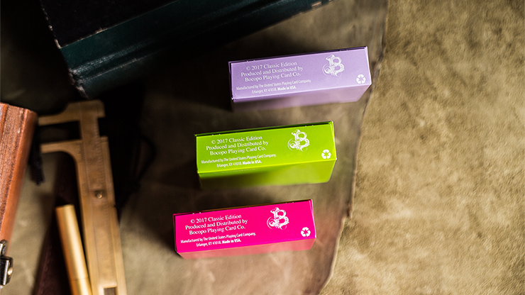 Steel Playing Cards is now available in PINK! Steel Playing Cards was distributed in 2015 and we are proud to say that this deck was embraced by countless fans, due to its premium design and finest quality. We launched new editions of Steel Playing Cards to continue the classic this year. The bright-colored card back echoes the color on the tuck. Simple dot patterns coupled with a white edge make it more graceful and luxurious. Classic Patterns are adopted on the card face to enhance the entirely solid-color design style. Custom Joker cards have the Bocopo Playing Card Company's logo. The flawless design makes the deck a fabulous selection for magicians and cardists alike. Steel Playing Cards is printed by the United States Playing Card Company with casino quality stock. Air-Cushion Finish enhances the cards' amazing handing. This wonderful deck will bring you pleasure as soon as it comes out of its package.